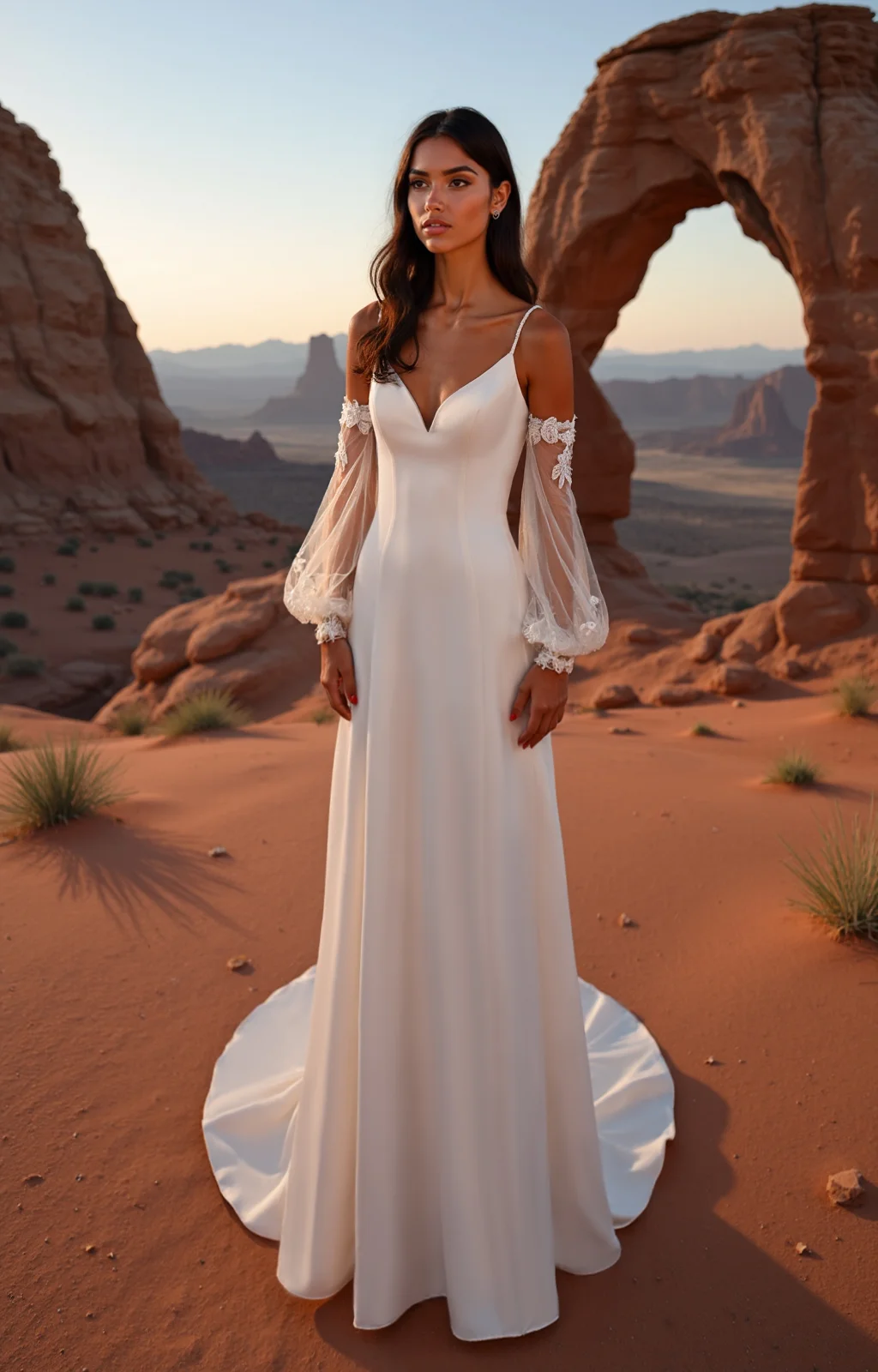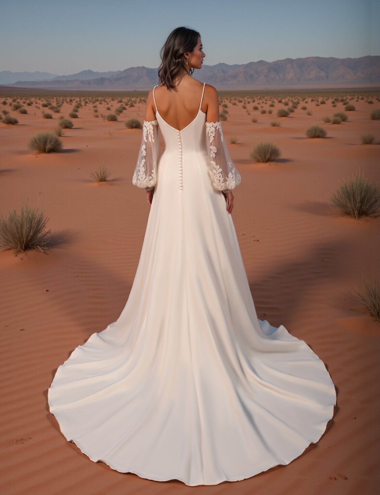 ROBE CINTREE EN SATIN AVEC MANCHETTE TULLE ET EMPIECEMENT EN DENTELLE