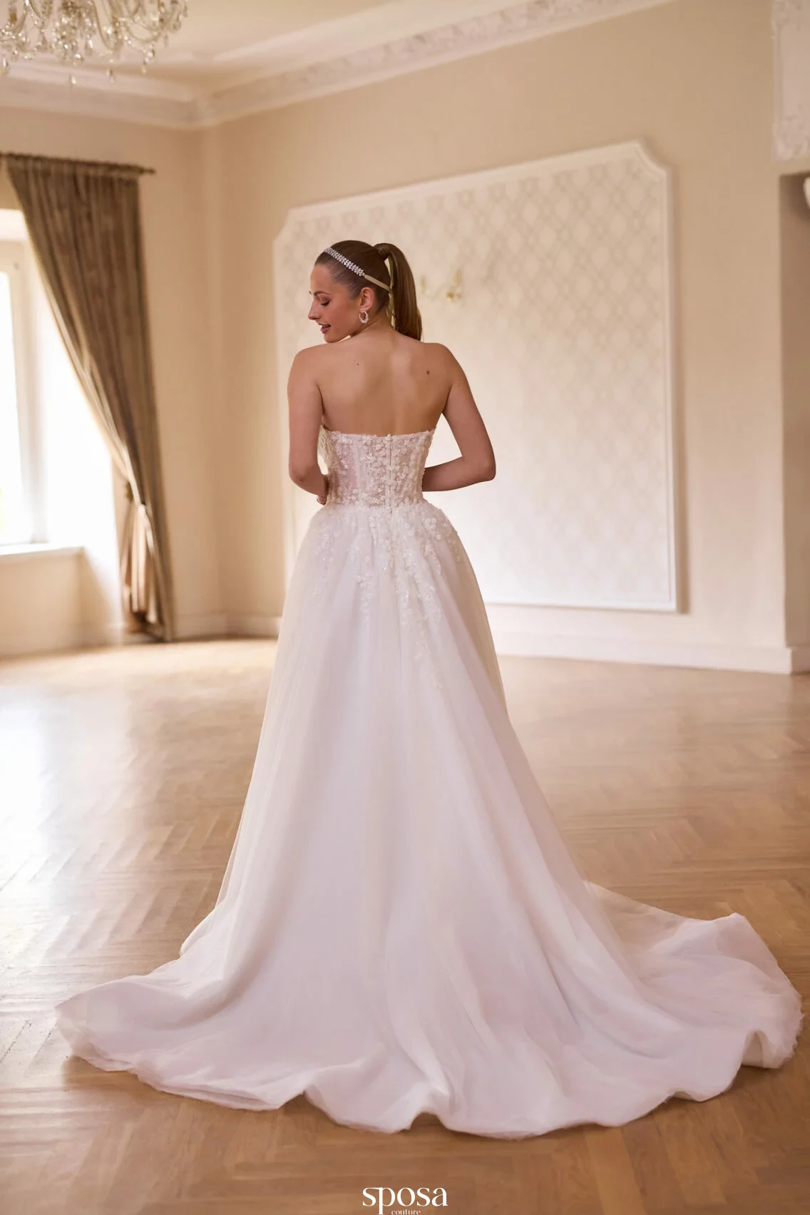 Robe en tulle avec dentelle florale scintillante et corset brodé qui mettra en valeur la taille. Une robe douce et moderne