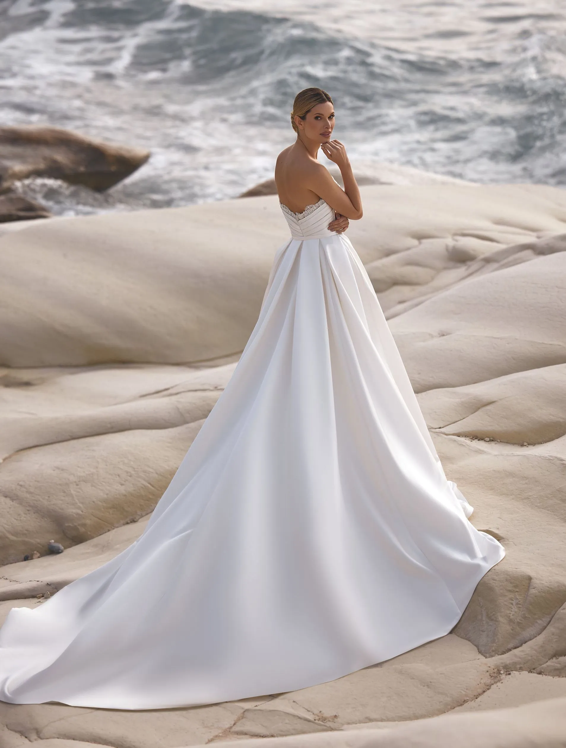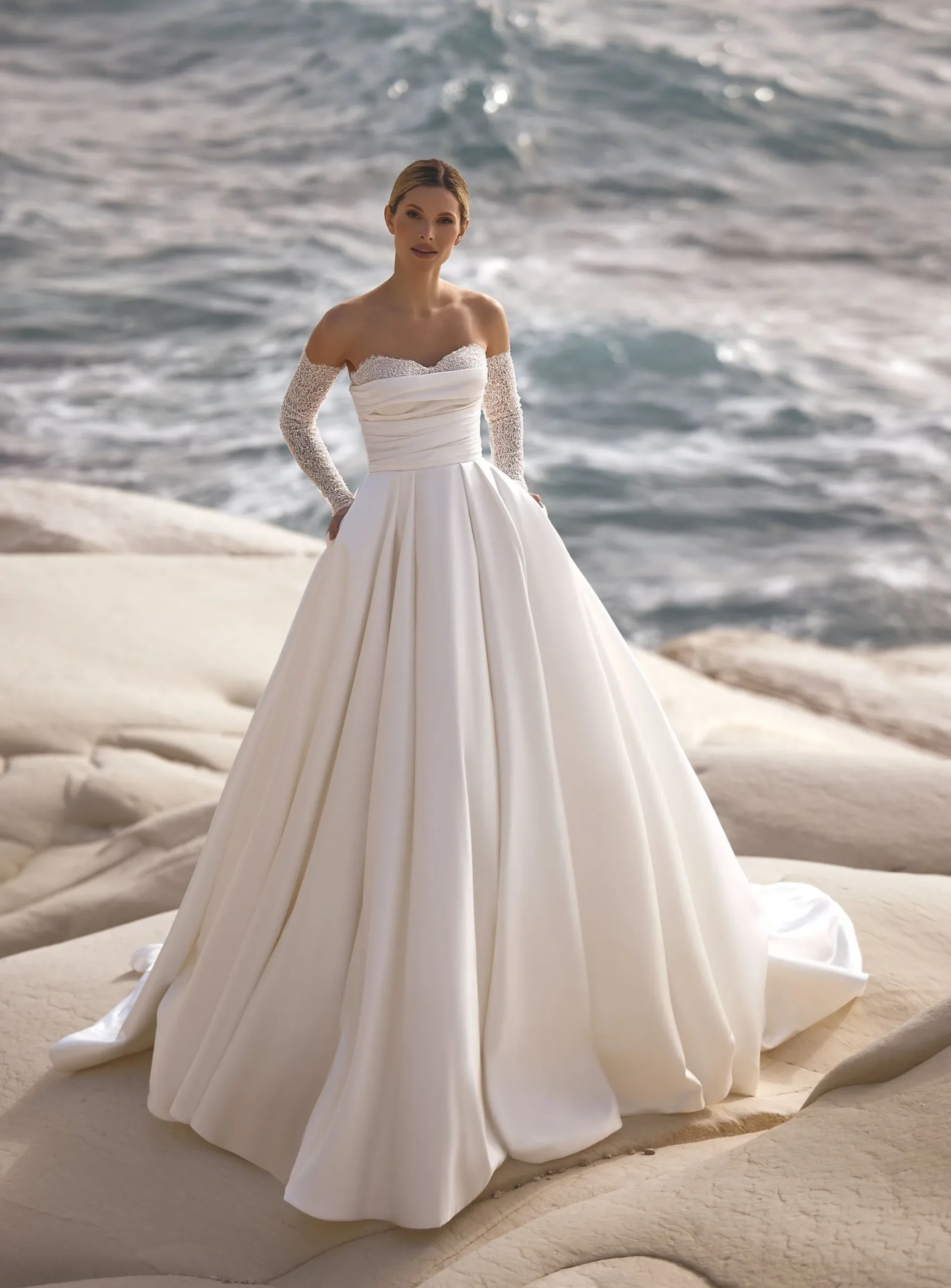 ROBE BUSTIER SATIN ET PERLE, MANCHETTE PERLE AMOVIBLE