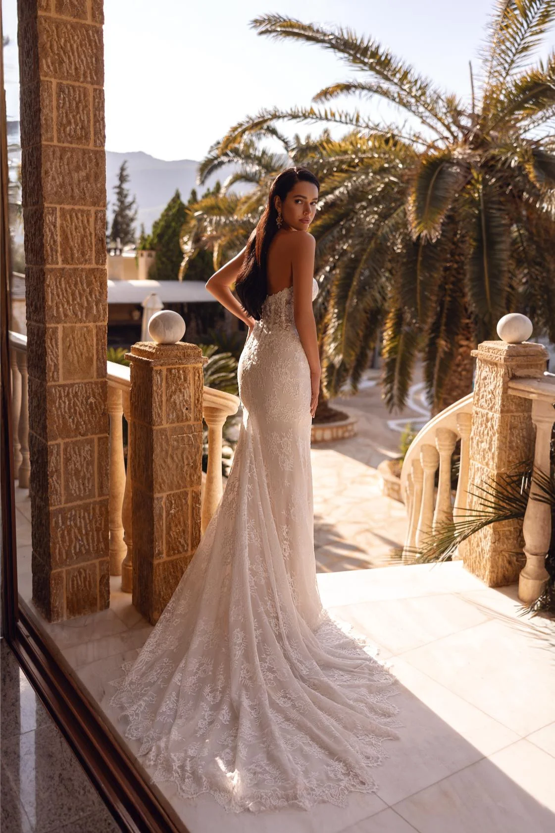 ROBE SIRENE BUSTIER, FULL DENTELLE AVEC MANCHE AMOVIBLE