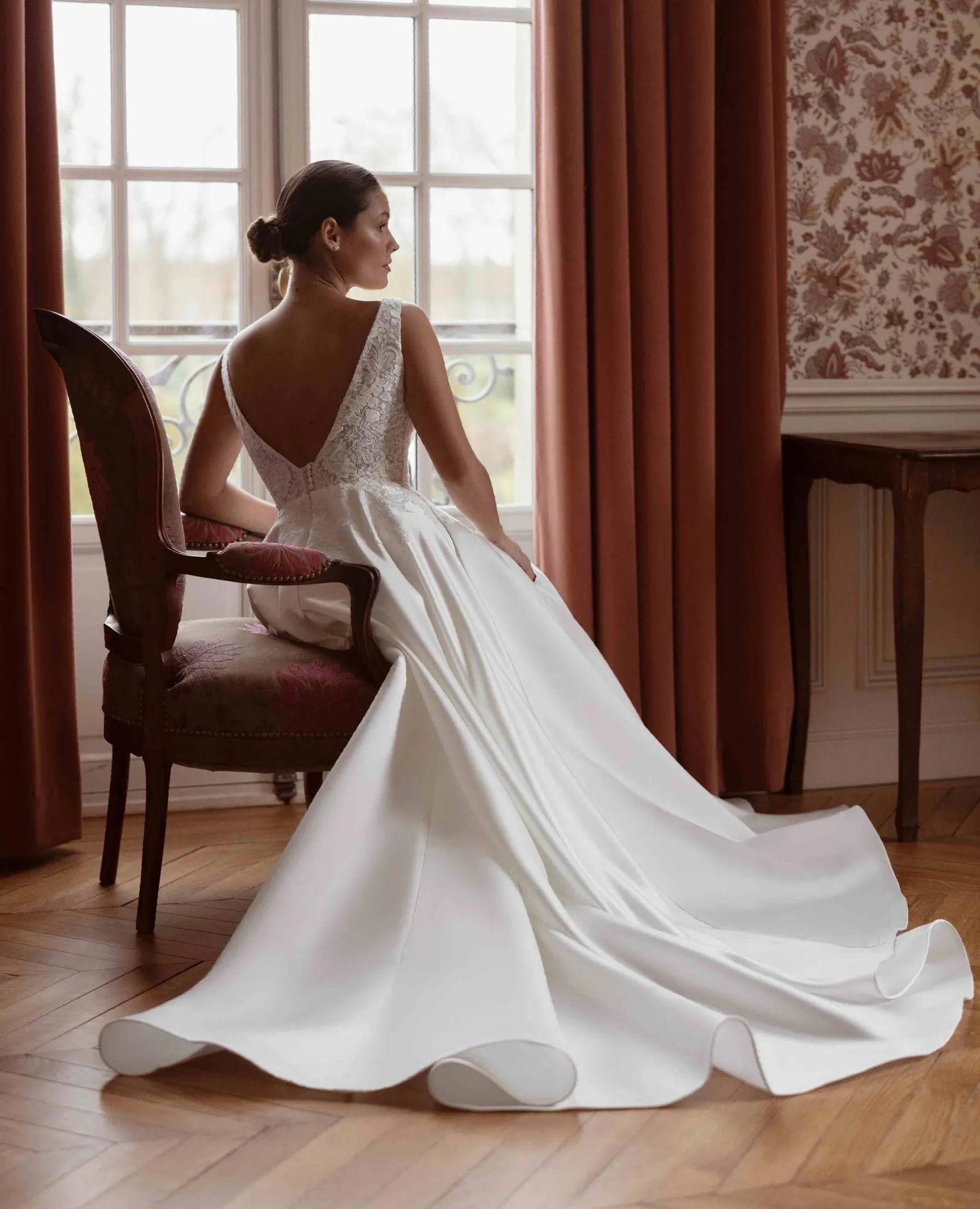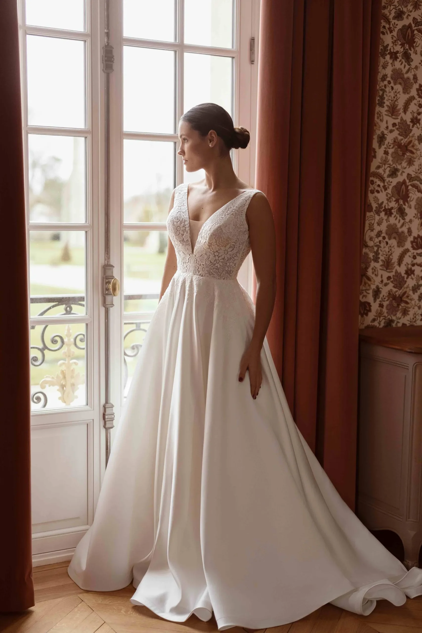 ROBE TRAPEZ EN SATIN ET DENTELLE